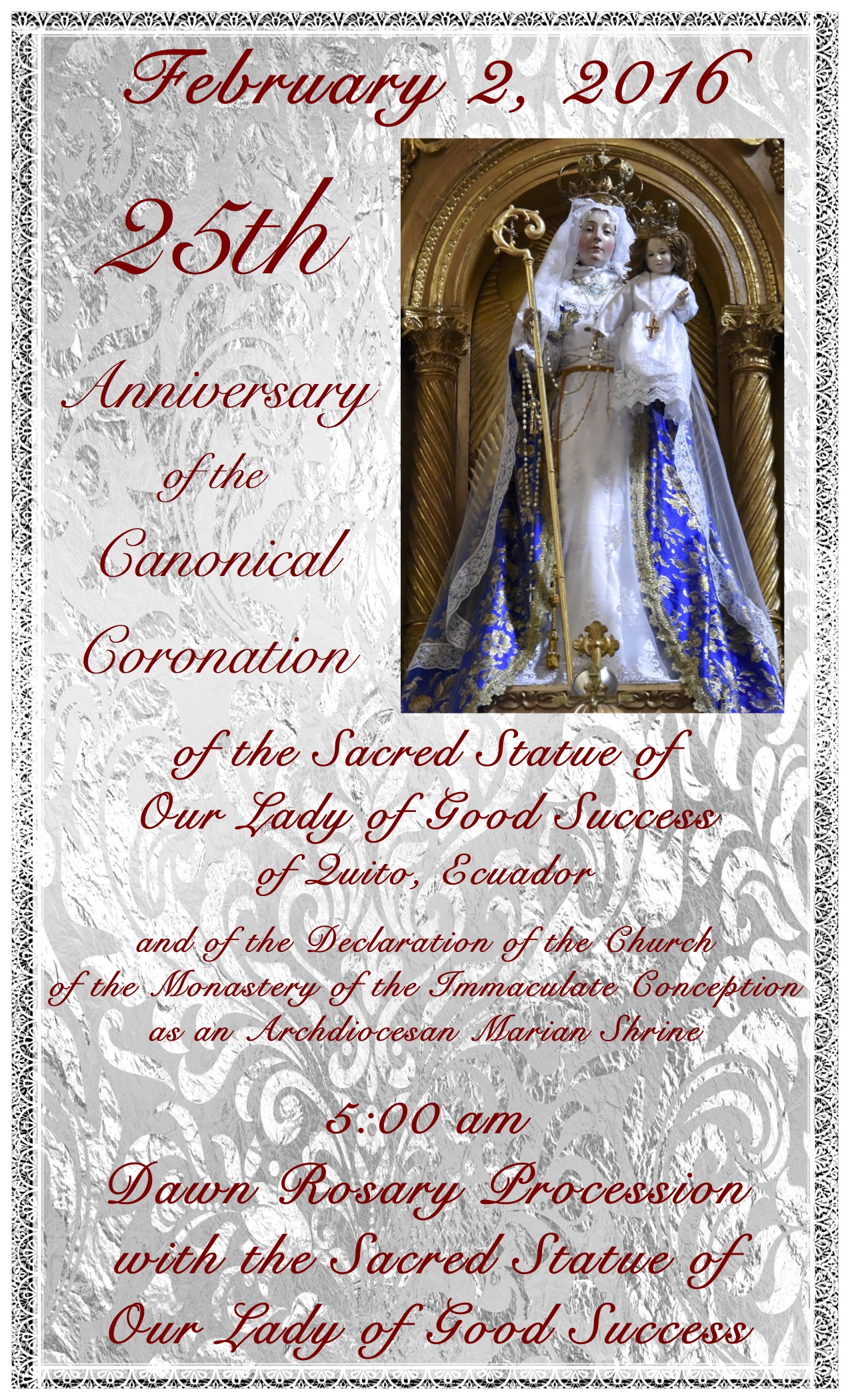 OUR LADY OF GOOD SUCCESS OF QUITO, ECUADOR – 25TH CANONICAL CORONATION ANNIVERSARY ON FEBRUARY 2, 2016By pablothemexican | 2015/11/12Posted in Uncategorized